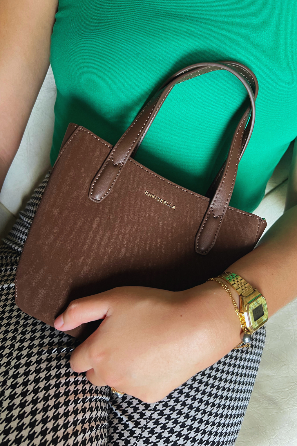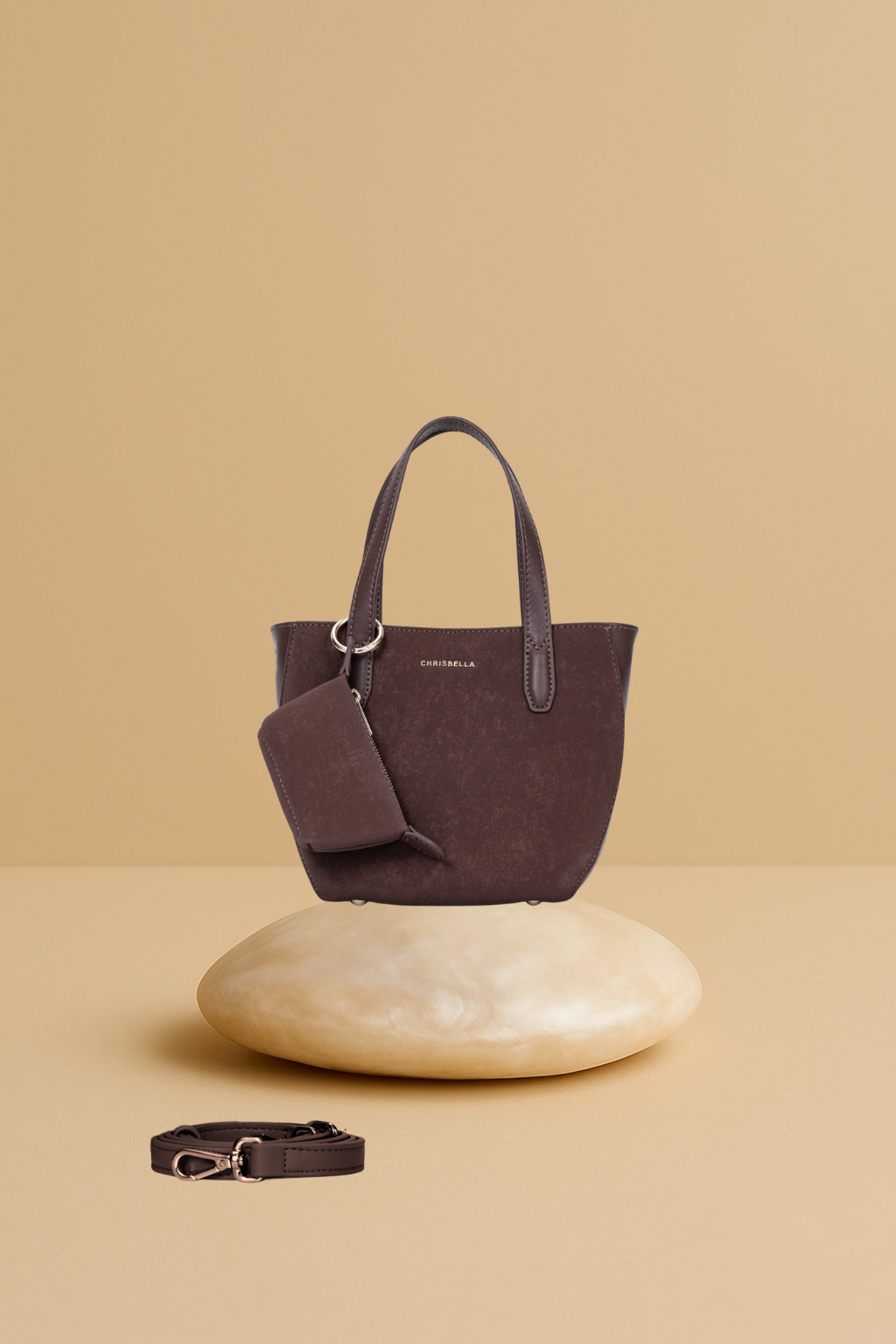 - Le Modèle Mossa, signé de la marque Chrisbella, arbore son logo et séduit par son originalité dans un format mini.